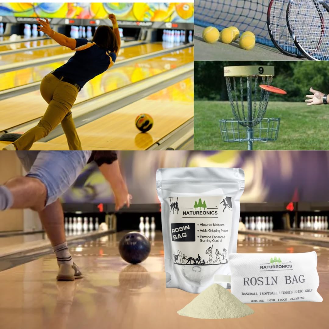 - BOWLING GRIP: With NATUREONICS Rosin Bowling Ball Bags, you can play with Confidence. Apply the Rosin on your throwing fingers or on the outside of the ball for a better spin. NATUREONICS Bowling Rosin Bags are a must have for improving your Scores.